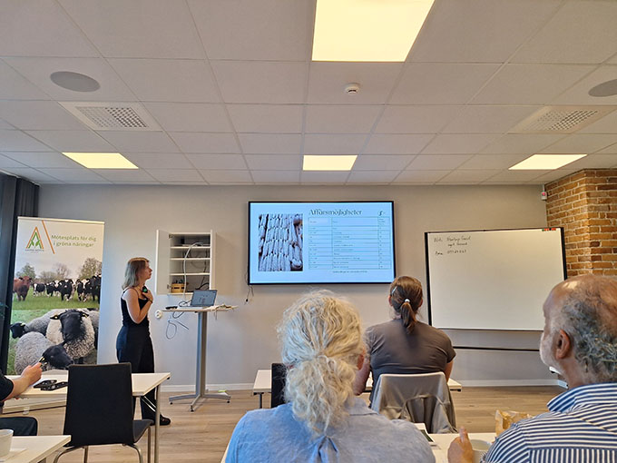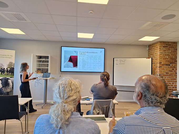 Efter en inledande presentation av Svenska Fåravelsförbundet om nuläget i svensk ullproduktion berättade Swedish Textile om Arena Svensk Ull och pågående industriella satsningar i Hälsingland. Fokus låg på att lösa flaskhalsen kring insamling, klassning och logistik, samt hur efterfrågan på spårbarhet och hållbarhet påverkar textilindustrin framöver. Hushållningssällskapet Västra presenterade erfarenheter från Strömma-insamlingen och andra regionala initiativ för att bygga upp fungerande och lönsamma ullstationer.