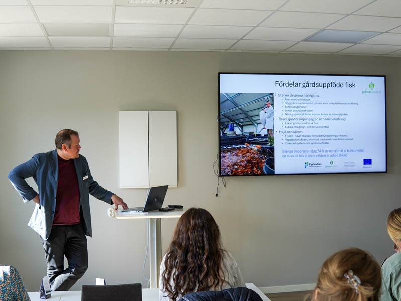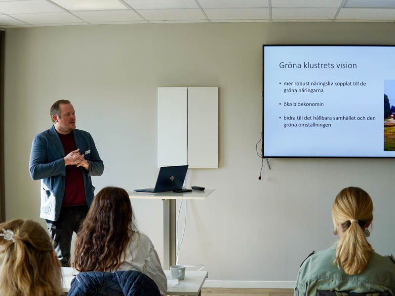 Wexsus var på en studieresa i Dalsland och ville besöka oss på Gröna klustret för att ta del av allt arbete som vi gör. Christian Friman presenterade vår organisation, vad vi arbetar med och hur vi skapar förändring genom våra satsningar Cirkulära System och Arena Skog. Dessutom pratade vi om vår nya fiskesatsning, där vi under tre år ska vi etablera en utbildnings- och demonstrationsanläggning för gårdsuppfödd fisk på Nuntorp.
